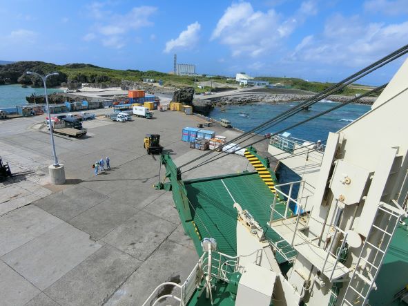 荷役を終えて美しい与論島を出港!