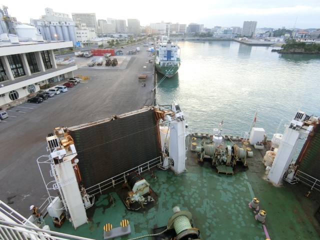 船の近くへ行ってみるとまだ車両の誘導中でした。船尾にしかランプがないので全部バックで誘導・・・