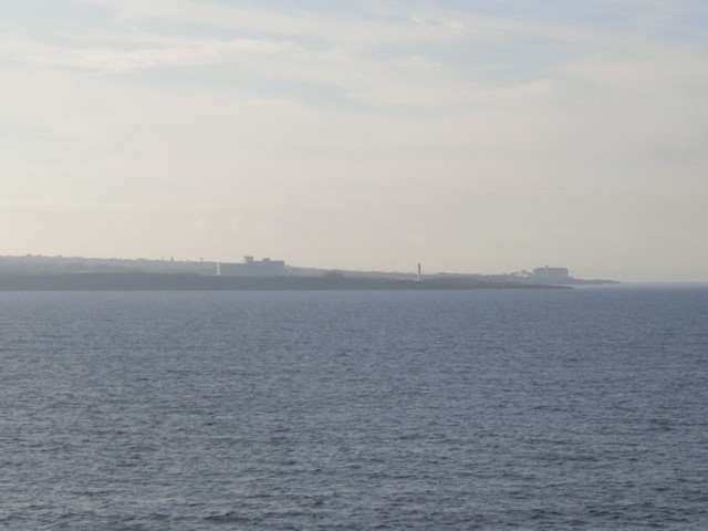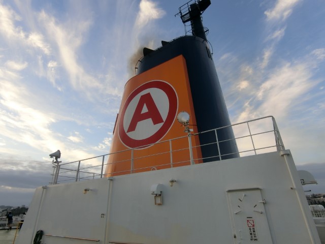 出港はデッキで見ました。夜が明けて明るくなっていました。