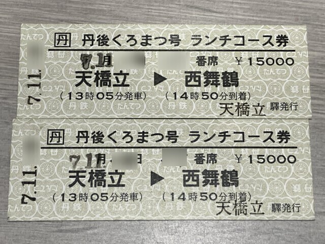 「丹後くろまつ号」のランチコースは天橋立に前泊しなくても、大阪や京都を朝出発し、天橋立を軽く観光してから乗れるのでとても利用しやすいダイヤでした。