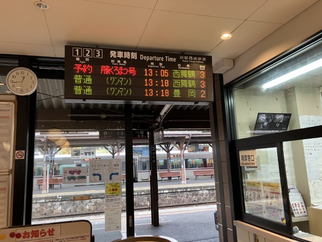 前の列や通路を挟んだ横の列に予約のお客さんがいましたが、西舞鶴発車後(以後、乗車扱いがない)お二方とも空いている他の座席へ移動、絶妙な間隔を空けてお互いがゆったり快適に過ごす事ができました。乗り慣れている地元の人?の気配りは流石です!