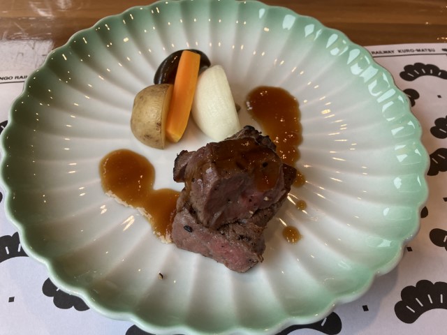 ただ、観光列車としての満足度という面で、車内で働いていた人達が配膳が忙しすぎて乗客とコミュニケーションを取る余裕がなかったように感じました。陶器の美しい食器で配膳するので仕方がない面もあると思います。