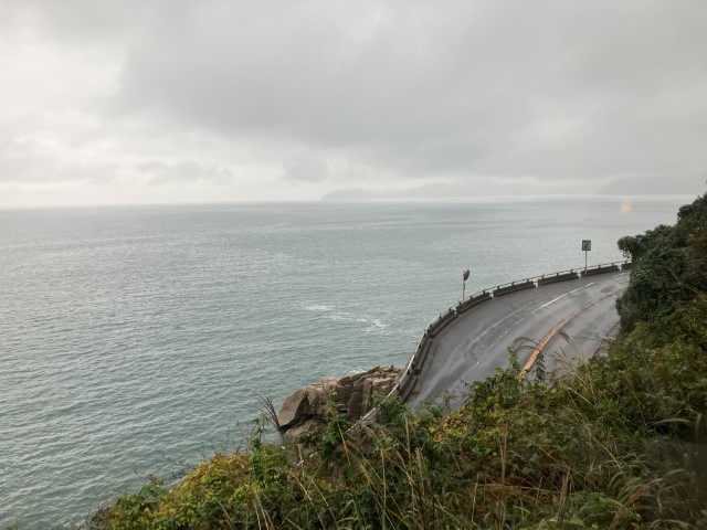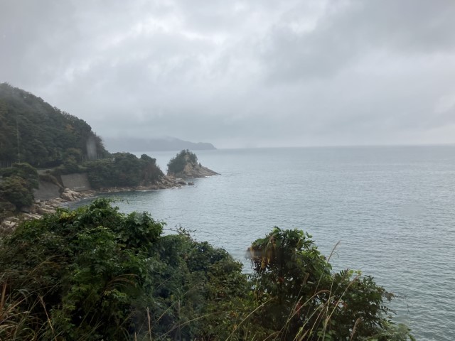 14時10分から奈貝海岸で15分停車。天気が良ければ美しいのでしょうね~残念な雨でした。