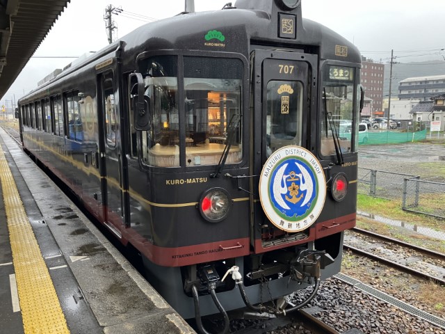 天橋立を出発して18分後、栗田(くんだ)駅で40分間停車しました。「丹後くろまつ号」は普通列車からの改造で正直なところ揺れが大きいのですが、停車中に食事の配膳を行うための長時間停車のようでした。